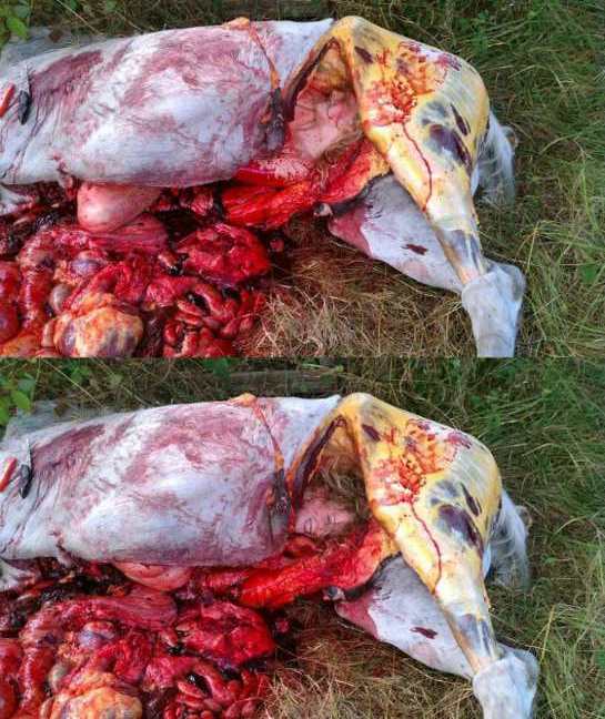 Why would a young couple, after caring for a 32 year-old horse in declining health, euthanize the animal, gut it and climb inside the carcass? No, I’m serious. Jasha Lottin and her boyfriend John Frost of Oregon cared for the horse but decided to end its life with a single shot from a large calibre rifle which they maintain was performed humanely and only because the animal was suffering. But gutting the animal, climbing inside its carcass to pose for photos and then butchering and eating it is beyond bizarre to say the least.